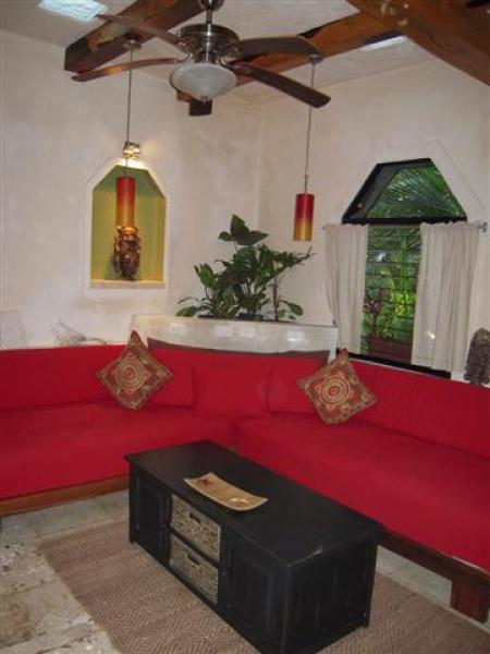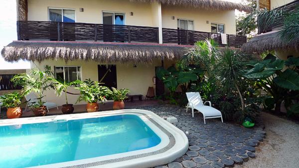This beautiful condo is in the intimate Villas Geminis Condo Hotel a little gem in the heart of Tulum town, including a beautiful swimming pool a shallow end for children to play in, surrounded by lush tropical vegetation and only minutes from the most s