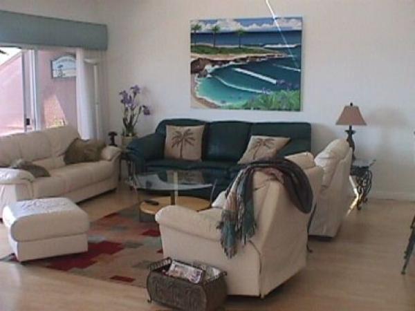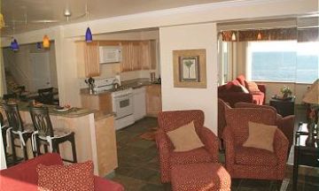 Ocean views from the living room, kitchen and deck. The townhome is equipped with cable TV, wireless internet access and unlimited long distance telephone service. It has a washer and dryer, an enclosed two car garage, fully furnished full size kitchen. C