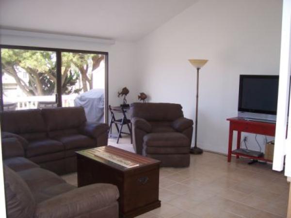 Located in a beautiful oceanfront setting, this Encinitas vacation townhouse by owner offers unobstructed view of the scenic landscape. Part of a gated community, this home is an ideal place for a quiet family gathering. Green belts with lots of trees, f