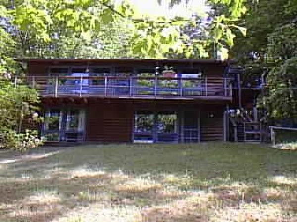 This secluded mountain cabin is on 3 1/3 wooded acres with mountain view from front balcony. The landscaping includes natural wooded areas and wildflower gardens, and a 3' pool with waterfall. The custom designed cabin features 2 levels with separate entr