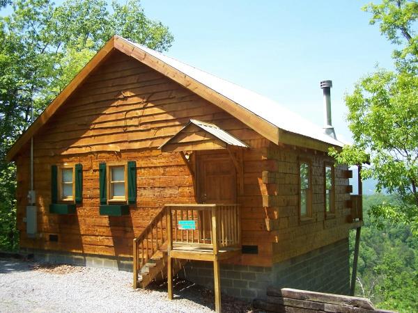 Honeymoon View #1 and #2 sit on a ridge of a mountain with the most wonderful views. These one bedroom hand crafted log homes are only 5 minutes from downtown Pigeon Forge and all the attractions, but wonderfully private for your romantic stay in the smok